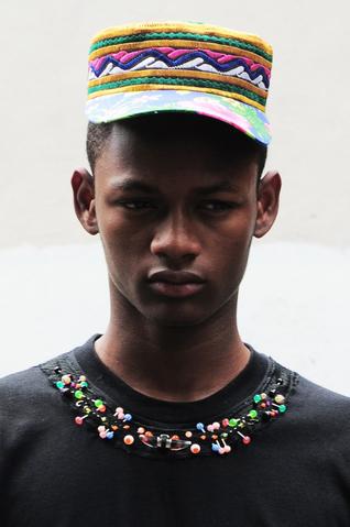 "MY FIRST COLLECTION WAS MADE ENTIRELY OF RECYCLED STUFF. THE HATS WERE MADE OF KUFIS AND YARMULKES. THE TEES WERE MADE WITH SODA-TABS, BELLY-RINGS AND COWRIE SHELLS. ON THE WEEKENDS I STARTED DOING PHOTO-SHOOTS WITH FRIENDS AND POSTED THE PICS ON MY PAGE. PEOPLE STARTED HITTING ME UP TO BUY MY DESIGNS ONLINE AND I DID POP-UP SHOPS AT PUBLIC PARKS AND NIGHT CLUBS. THEN ONE DAY SOMEONE FROM DKNY REACHED OUT TO ME!"