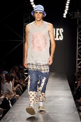 "IN 2013 I WON AN INTERNET CONTEST CALLED VFILES RUNWAY. HUNDREDS OF DESIGNERS AROUND THE WORLD ENTERED FOR A CHANCE TO PRESENT THEIR COLLECTION WITH AN OFFICIAL RUNWAY SHOW AT NYFW. I WANTED IT SO BAD, THIS WAS MY CHANCE TO SHOW MORE THAN JUST HATS AND T-SHIRTS. IN SEPT 2013 I PRESENTED A COLLECTION TITLED BABY BOY. IT WAS A MASH UP OF EASTERN WARDROBE REFERENCES MIXED WITH STREET-STYLE SAGGY PANTS AND DURAGS."